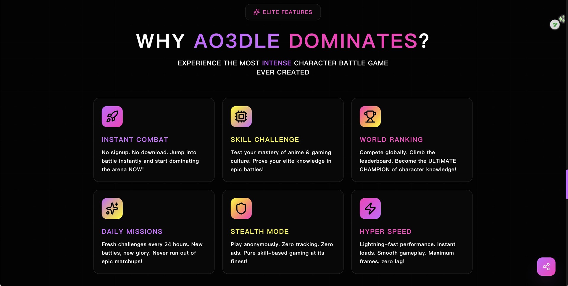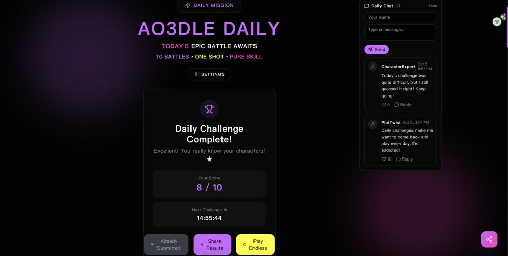 AO3dle – 一个测试你对 AO3(Archive of Our Own) 角色人气了解程度的挑战游戏!玩法超简单:两个角色 PK,你猜哪个同人作品更多?