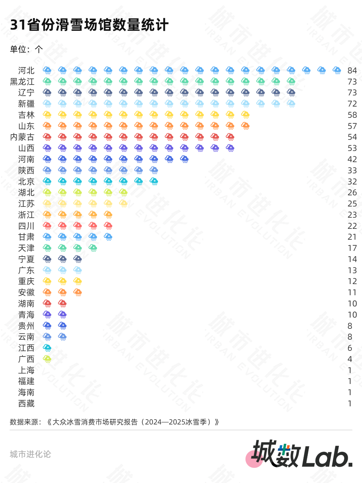 不过,在滑雪场馆数量、冰雪运动相关企业规模等方面,黑龙江与“全国第一”尚有差距。根据上述报告对各省份滑雪场馆数量的统计,河北以84个位列全国第一,黑龙江(73个)与辽宁并列第二,新疆(72个)以微弱差距紧随其后;同期,黑龙江冰雪运动产业相关企业数量共1480家,分别比前两位的河北和北京少266家、88家,排名从上个冰雪季全国第二降至全国第三。