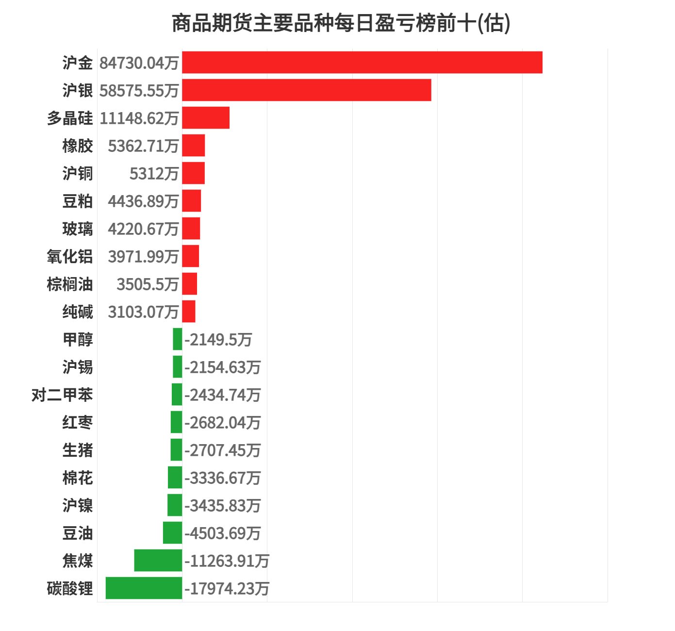 今日商品期货上榜机构席位中沪金盈利第一,为84730.04万元。