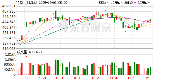 二级市场上,截至当地时间2日收盘,特斯拉股价跌0.21%,报429.24美元,最新市值为14276亿美元。