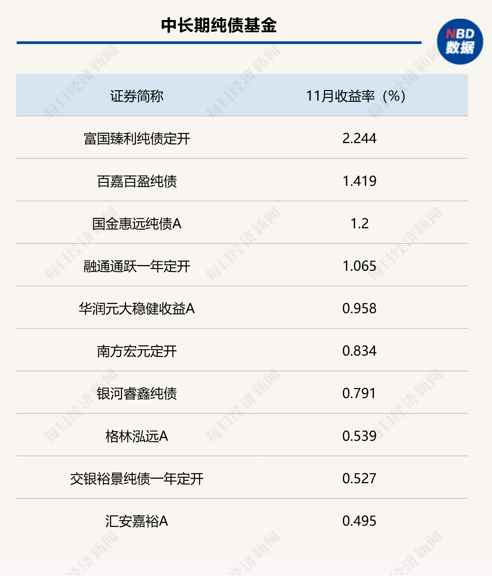 11月各类公募债基头部业绩产品统计(来源:Wind)