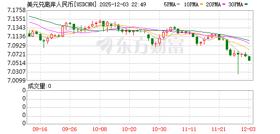 继升破7.07关口后,12月3日,离岸人民币对美元汇率盘中最高升至7.05625,创2024年10月9日以来新高。截至发稿,报7.05825。