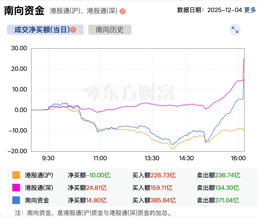资金方面,截至收盘,南向资金累计净买入港股超14亿港元。