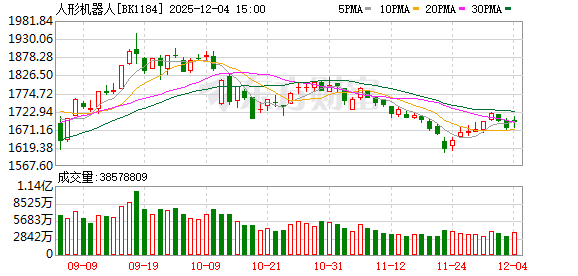人形机器人板块12月4日早盘表现强势,华伍股份、骏亚科技、巨轮智能、睿能科技、龙溪股份纷纷涨停;三协电机、德马科技、江苏雷利则大涨超10%。此外,机器人执行器、减速器、同步磁阻电机等相关板块也涨幅靠前。