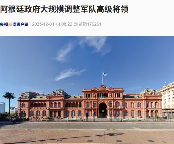 阿根廷总统府12月3日宣布,阿总统米莱对该国武装部队高层进行了大规模调整。