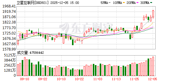 周五(12月5日)卫星互联网概念大涨超3%,航天发展涨停,上海瀚讯、科翔股份、震有科技等强势跟涨。