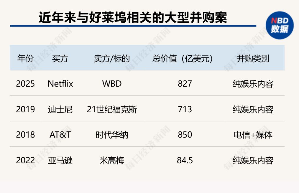而Netflix此次不仅金额更高,也更聚焦于纯影视与流媒体资产,不含新闻或体育等非核心业务。虽然2018年AT&T曾以约850亿美元收购时代华纳,但那是一次电信公司跨界整合媒体的尝试,且包含CNN等大量非娱乐资产。相比之下,Netflix与WBD的交易,是真正意义上由内容平台主导、针对好莱坞顶级制片厂核心资产的“精准吞并”。