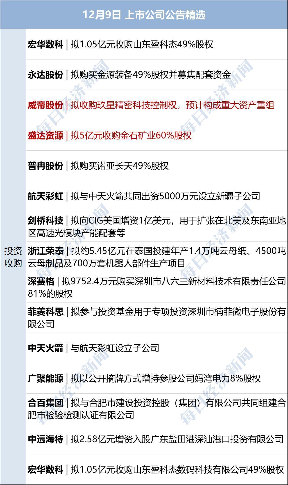 派拉蒙、华纳兄弟探索(WBD,股价27.23美元,市值675亿美元):据媒体报道,12月8日晚间,在华纳兄弟探索公司刚刚与奈飞达成交易仅数日之后,由大卫·埃里森掌舵的派拉蒙周一对其发起了恶意收购,要将这家历史悠久的娱乐公司收归麾下,并直接把报价摆到股东面前。派拉蒙提出,以每股30美元的全现金方式收购华纳全部股权,总额将高达1084亿美元(相当于人民币7600亿元)。华纳旗下拥有CNN、TBS、HGTV等电视频道以及HBO Max流媒体服务。派拉蒙方面称,与奈飞的方案相比,此次要约对股东更有吸引力,也更有希望通过监管审查。派拉蒙表示,其报价“相比奈飞提出的对价,额外提供了180亿美元现金”。(每经综合)