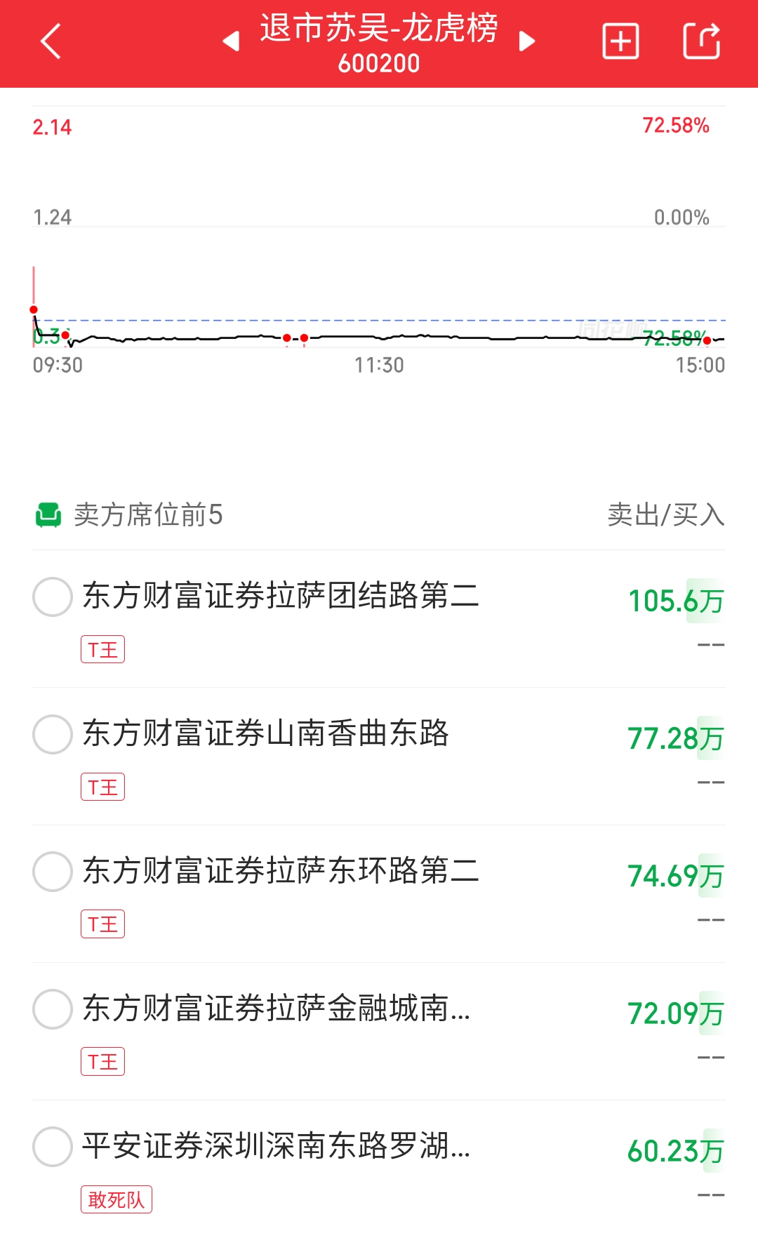 参与炒作退市苏吴的资金,多来自东方财富证券旗下的拉萨系营业部,而东方财富证券拉萨系营业部在11月25日也出现在另一只退市股*ST东通的龙虎榜上。
