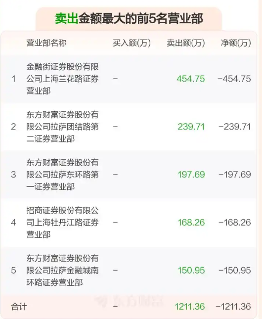 龙虎榜数据显示,11月21日,退市苏吴的龙虎榜买入额为1014.99万元,卖出额为1211.36万元,净卖出196.36万元,而上榜的营业部以东方财富证券拉萨系营业部为主,也是股民俗称的“散户大本营”。