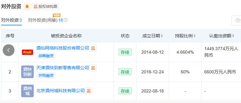 作为此次控股权的接盘方,创东方华科的资本背景与酒类赛道布局随即引发行业关注。天眼查数据显示,创东方华科成立于2022年4月12日,是一家以从事商务服务业为主的企业。值得关注的是,该公司成立后便快速切入酒类流通赛道,2023年其以600万元认缴出资拿下“酒快到”60%股权,如今该出资额已经增加至6600万元;天眼查数据同时显示,创东方华科还持有酒仙网络科技股份有限公司4.6604%的股权,因此,该股权投资基金在酒类线上线下渠道均有落子。