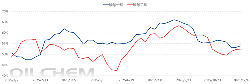 隆众资讯最新周期数据显示,磷酸一铵产能利用率和磷酸二铵产能利用率均有所回升。