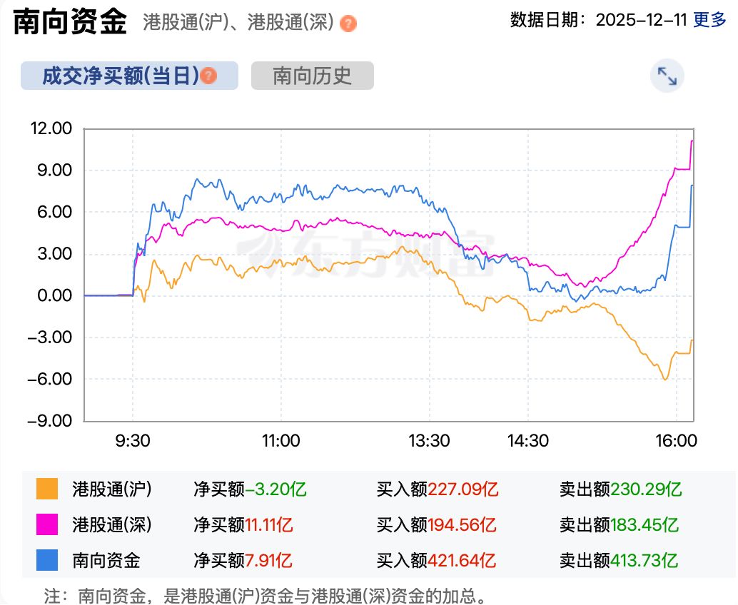 资金方面,截至收盘,南向资金累计净买入港股超7亿港元。
