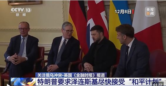 知情人士称,乌克兰总统泽连斯基8日在英国伦敦与英法德三国领导人会晤时,开场就暗示形势紧急。泽连斯基表示,在最近的电话会议中,美国总统特使威特科夫以及特朗普的女婿库什纳向他施压,敦促他尽快作出决定。一名知情人士称,美国总统特朗普希望能“在12月25日前”达成协议。