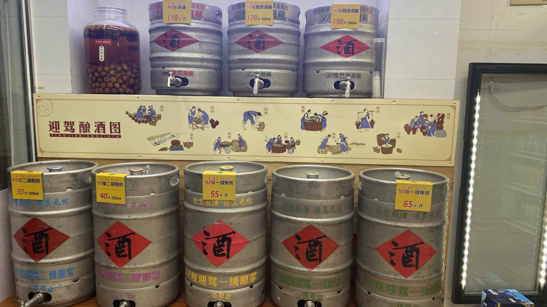 记者注意到,迎驾贡酒在更早期间已经布局散酒业务,目前合肥已有多家迎驾散酒店。12月11日晚,记者实探其中一门店,店内迎驾散酒价格从十几元每斤到198元每斤不等。店老板向记者介绍,店内6.5元/50毫升的酒可对标200元瓶装酒酒质。生意不错,桶装散酒容量为100斤一桶,约一周会补一次货。此外,店内还搭售店老板自营的其他类散酒。