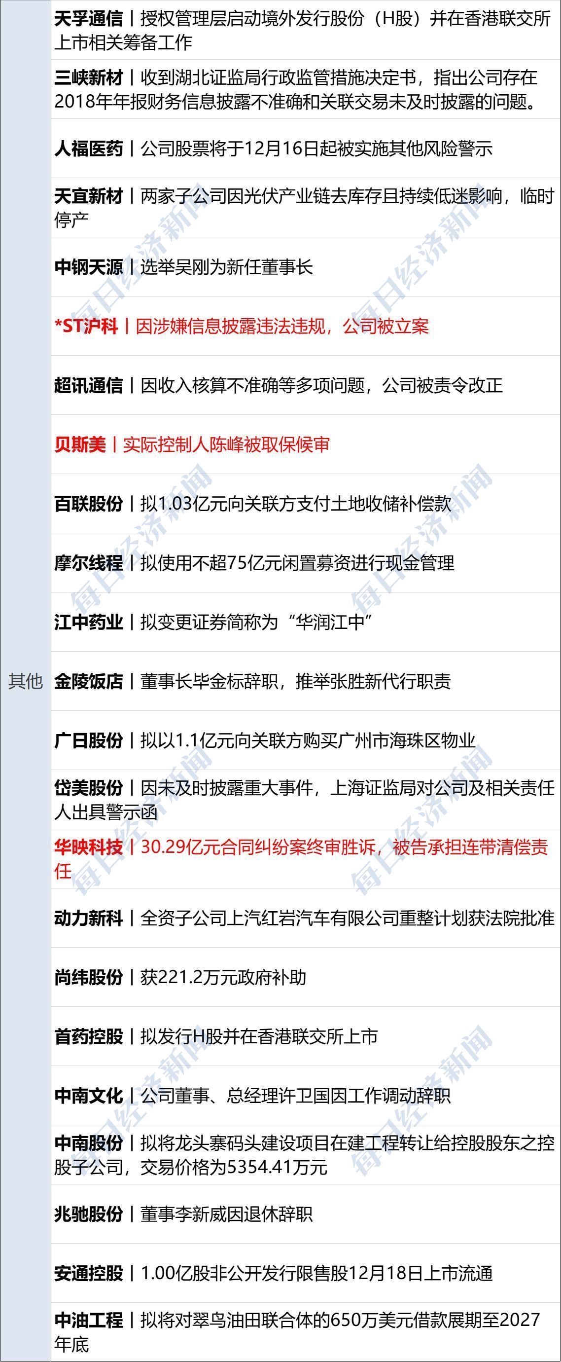 华谊兄弟(SZ300027,股价2.23元,市值61.87亿元):天眼查显示,近日,华谊兄弟传媒股份有限公司及其法定代表人王忠军(王中军)新增一则限制消费令,涉及广告合同纠纷案件,申请人为北京泰睿飞克科技有限公司,执行法院为北京市朝阳区人民法院。12月10日晚间,华谊兄弟公告称,受经济形势影响,因部分回款资金未能如约到位,造成暂时性流动资金紧张,使得公司阶段性出现个别债务未能如期偿还的情形。王中军、王中磊两兄弟所持股份累计被冻结的比例已经达到100%,被冻结股份占公司总股本的比例合计为13.81%。