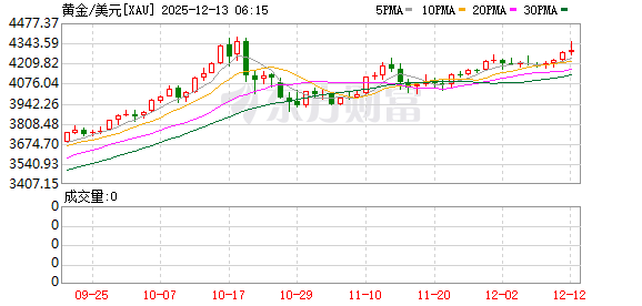 当地时间12月12日,海外贵金属市场呈现冲高回落,黄金守住涨势、逼近前高,银价收盘大跌。伦敦金当日上涨0.47%报4299.29美元/盎司,伦敦银则下跌2.5%、收报61.92美元/盎司。前者年初至今涨幅已达63.83%,后者今年涨幅高达114.35%。