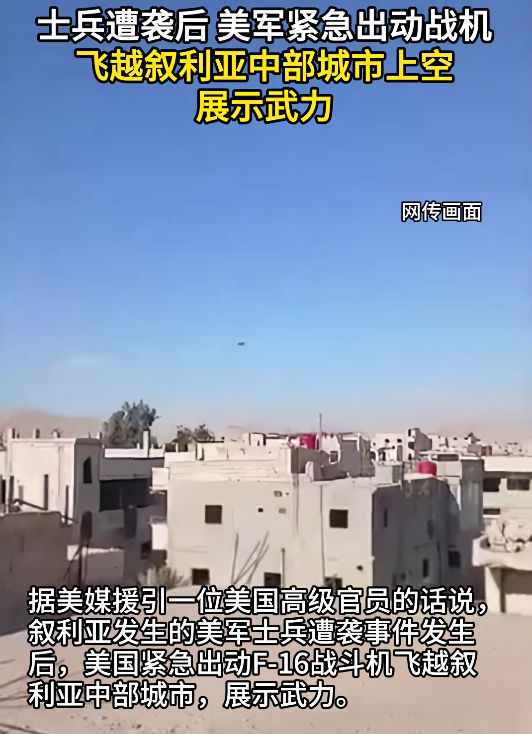 据参考消息,美媒援引一位美国高级官员的话说,叙利亚发生美军士兵遭袭事件后,美国紧急出动F-16战斗机飞越叙利亚中部城市,展示武力。社交媒体流传的视频显示,还有一架美军A-10攻击机在该市上空释放干扰弹。