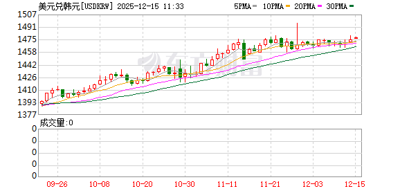 本月,韩元兑美元平均汇率已突破1470韩元,创下金融危机以来的最高月度水平。12月12日,韩元汇率在夜盘交易中,盘中一度跌至1美元兑1479韩元。