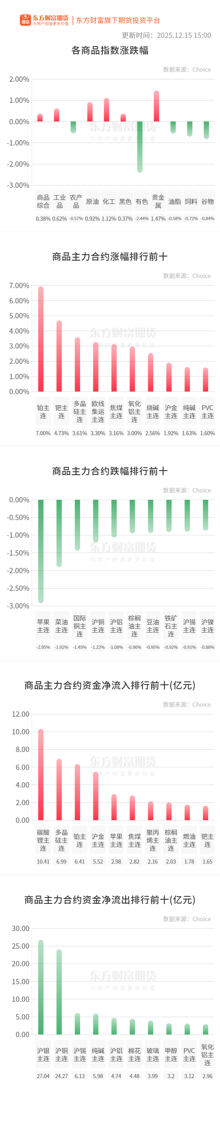 钢材:中央重要会议召开后,多部门集中部署2026年重点任务,包括多措并举促进投资止跌回稳,综合整治“内卷式”竞争等,明年还将根据形势变化出台实施增量政策。宏观政策仍有发力空间,有助于稳定市场情绪。周一焦煤期货大幅反弹,成本端对钢价有一定支撑。不过,钢市供需基本面压力逐步加大,淡季供需两弱,库存去化放慢。短期来看,钢价或窄幅调整运行。(我的钢铁网)