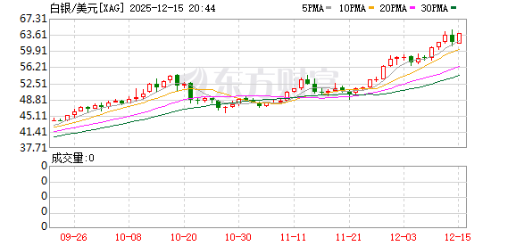 据Wind统计,截至12月14日,伦敦现货白银价格报64.65美元/盎司,年内累计上涨114%;COMEX白银期货主力合约价格报65.08美元/盎司,较年初上涨111.9%。