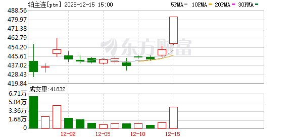 12月15日,铂期货主力合约早盘强势走高,午后强势封涨停,日内涨幅达7%,报482.4元/克,这是该品种上市以来首次涨停,成交量大幅攀升至4.18万手。此外,钯期货主力合约也一度大涨超5%,收盘涨4.73%,报407.6元/克。