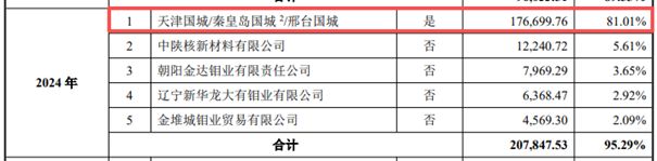 此外,标的的关联销售占比畸高——根据问询函回复数据,2024年国城实业向前五大客户的销售额占比高达95.29%,其中第一大客户是国城集团的全资子公司(天津国城、秦皇岛国城和邢台国城),销售金额占比高达81.01%。不过,国城矿业表示:“标的公司自2025年1月后已停止关联交易。”
