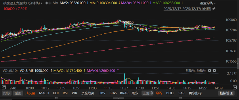 Choice数据显示,合约早间以101500元/吨开盘后持续上行,盘中最高触及109860元/吨,日内波动显著。截至发稿,合约报价108260元/吨,较开盘价上涨6760元,涨幅达6.66%。