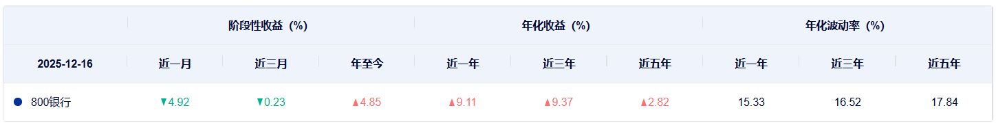 再对比两个指数的过往表现,从近一年、近三年到近五年,中证800银行指数、中证银行指数的年化收益都比较接近。同时,在波动率方面,两个指数的年化波动率也相差无几。