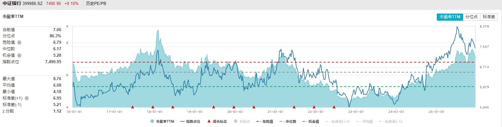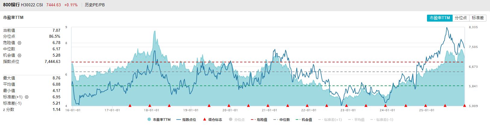 最后再看两个指数的估值水平,Wind数据显示,中证800银行指数和中证银行指数的市盈率TTM均回升到了近十年80%分位以上,均属于较高水平。