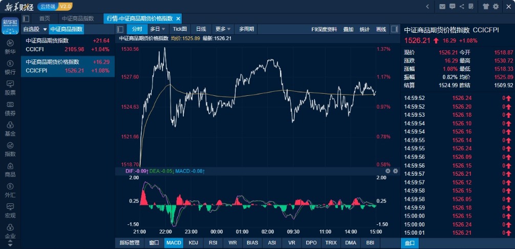 图为中证商品期货价格指数日内走势图(来源:新华财经专业终端)