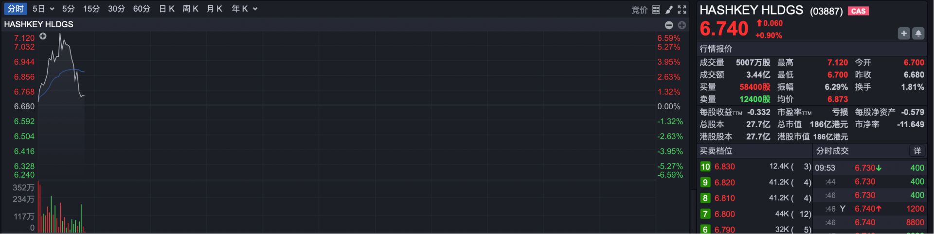 新股方面,今日HASHKEY HLDGS(HK03887)上市交易,早盘高开0.3%,随后一度涨超6%。