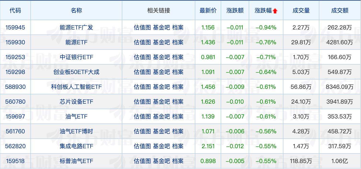 下跌方面,能源相关ETF回调居前,但跌幅均在1%以内。