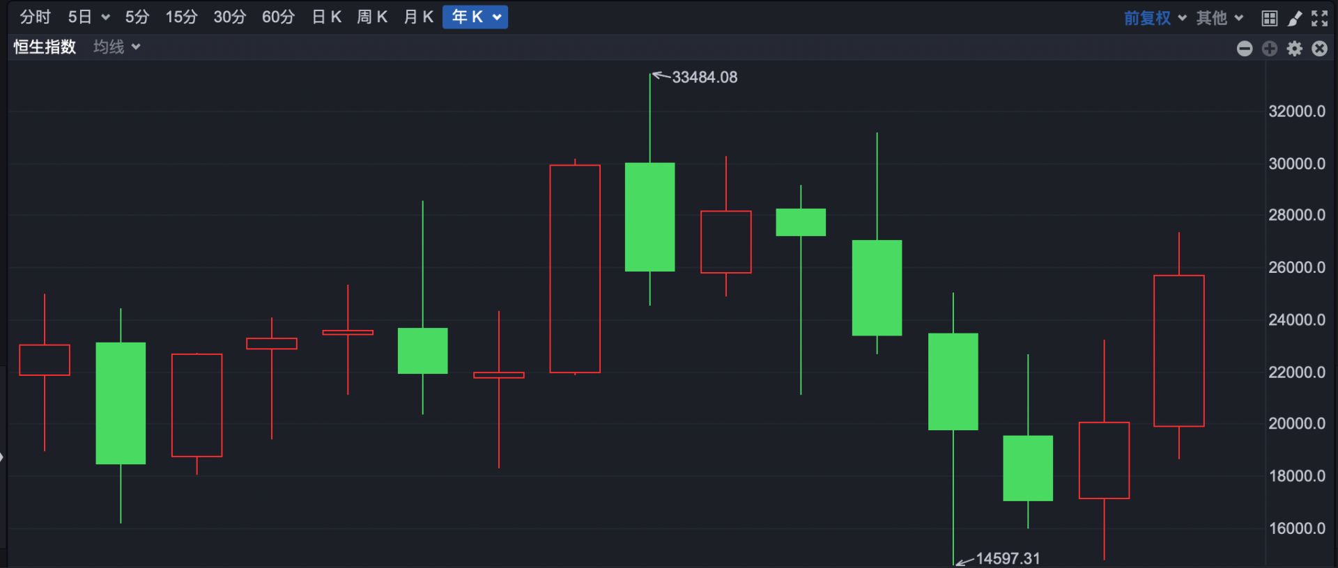 回顾今年的港股行情,截至今天,恒指年内累计上涨超28%,远超2024年全年17%的涨幅。再往前看,2020年到2023年,恒指连跌了4年时间,那才叫一个惨。而2017年,是近十年来恒指最强的一年,这一年累计涨幅36%,比今年也强不了多少。