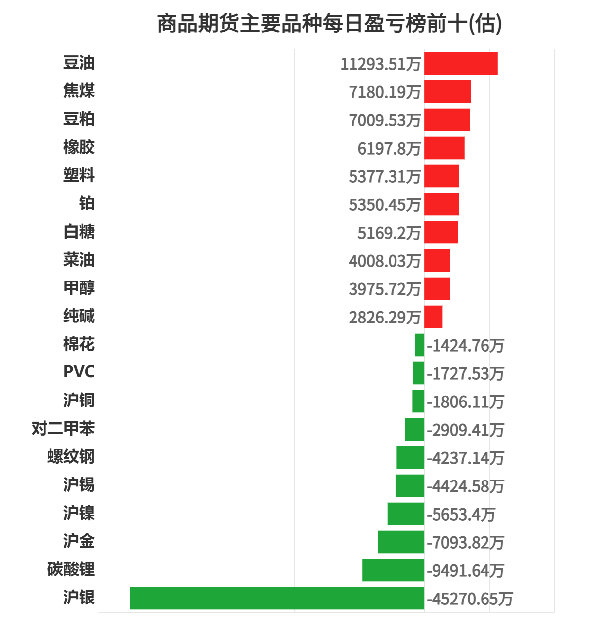 今日商品期货上榜机构席位中豆油盈利第一,为11293.51万元。