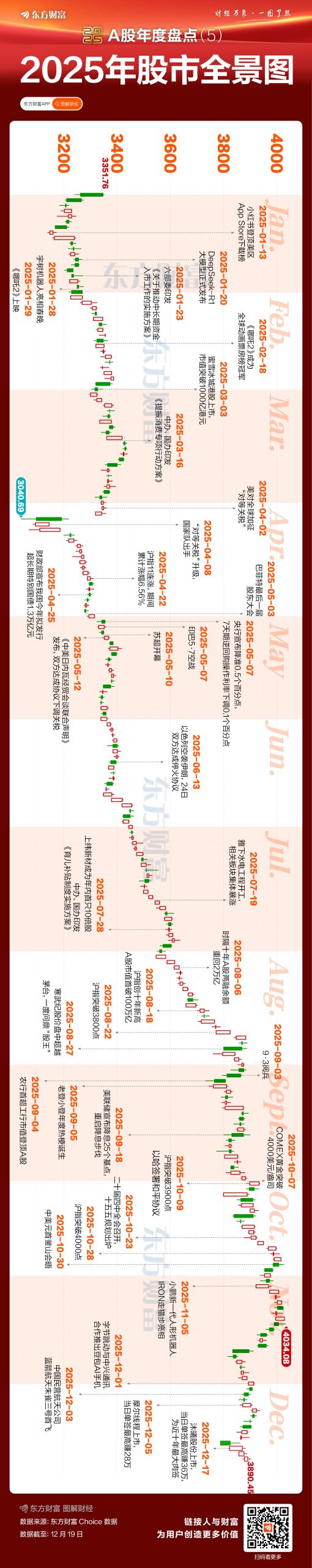 股民最关注的上证指数从3351.76点上涨到最高4034.08点,最低点为3040.69,整年在3000点上方运行。4月7日,受“对等关税”影响,指数跌至3040.69点,后在多方努力之下,指数连涨11天,几乎收回跌幅。8月18日,指数创下十年新高。8月22日、10月9日、10月28日,指数连续突破3800点、3900点、4000点,并在11月14日创下高点4034.08点。