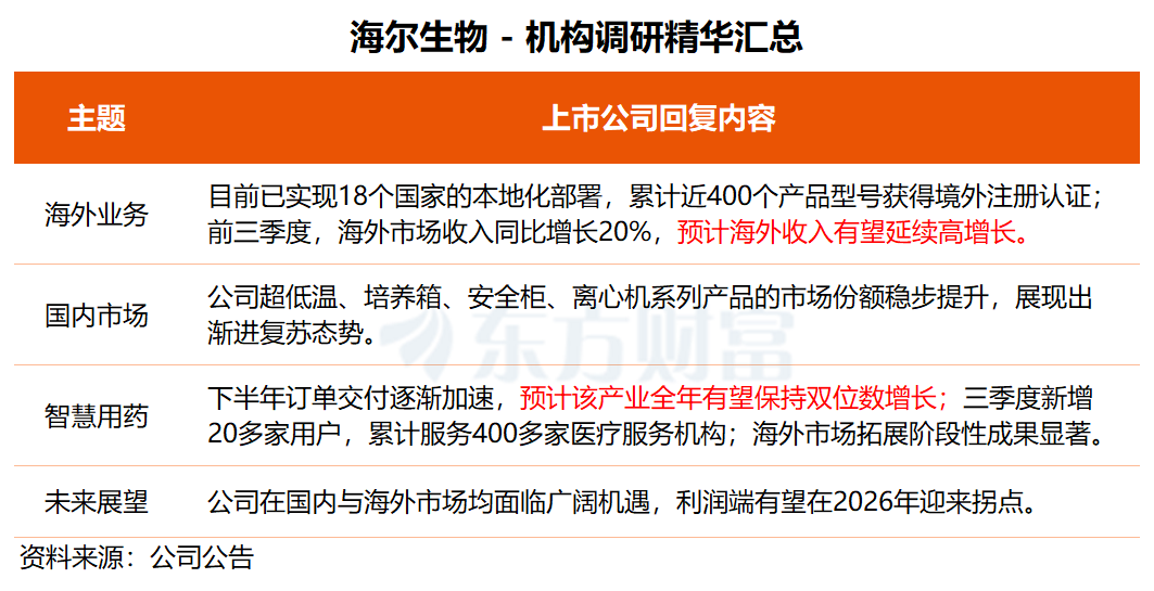 海尔生物表示,基于行业的常态化发展和公司核心竞争力的提升,经初步测算,从年度趋势上看,公司收入端在2025年确认拐点;利润端有望在2026年迎来拐点。公司同时提示称,相关预测依据目前可获得的公开信息及管理层初步测算作出,不构成公司对任何投资者或第三方的业绩承诺、盈利预测或前瞻性陈述。