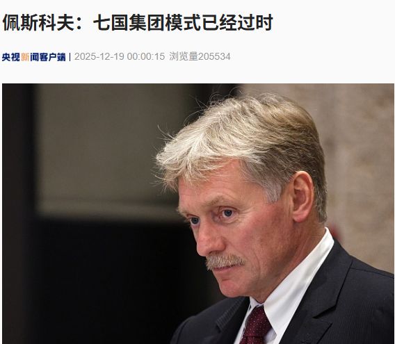 佩斯科夫还表示,俄罗斯对重返七国集团不感兴趣,并认为该集团模式已经过时。