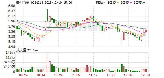 截至12月19日,贵州百灵股价报5.63元,涨1.81%,市值78.68亿元。