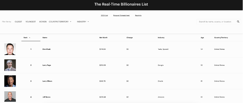 《福布斯》实时亿万富豪榜