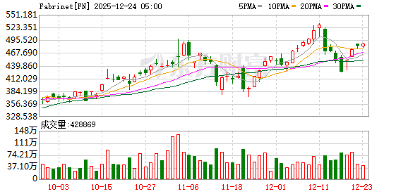 在基本面层面,Fabrinet 近期财务表现显示出较强的增长动能,收入与盈利均保持较高增速,同时管理层对后续季度给出的经营展望也体现出较高的可见性。在高景气赛道背景下,持续兑现的业绩表现有助于巩固市场对公司中期成长路径的信心。