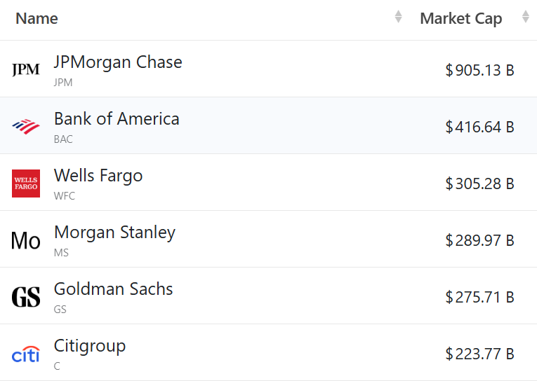 根据标普全球的数据,截至周二(12月23日)收盘,美国资产规模最大的六家银行——摩根大通、美国银行、花旗集团、富国银行、高盛和摩根士丹利——总市值升至2.37万亿美元,高于去年年底的1.77万亿美元。