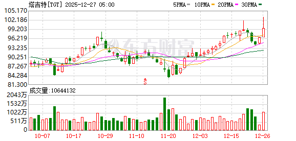 圣诞节后的第一个交易日,美国零售巨头塔吉特(Target)盘初一度拉升超3%。消息面上,激进投资者TCIM据传对该公司进行了建仓,引发市场遐想公司管理层可能将被迫做出一些改善资本回报的举动。