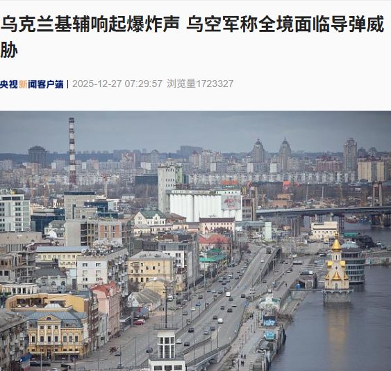 据央视新闻,当地时间12月27日,乌克兰基辅响起爆炸声。