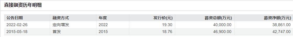 资料显示,四方精创A股首发募资总额为4.69亿元。此外,2022年2月,公司还通过定增募资了4亿元。也就是说,过去10年多时间来,四方精创在A股通过直接融资方式已累计融资近9亿元。