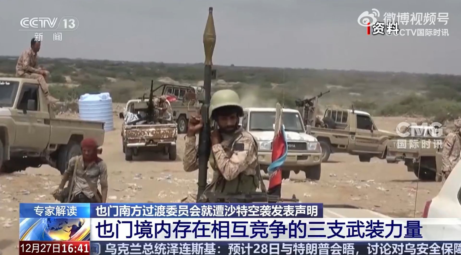 宁夏大学中国阿拉伯国家研究院教授 牛新春:过去几年,这三支力量之间不断发生战争,但是从2022年,沙特和也门胡塞武装达成停火后,也门国内的局势就基本平静下来了。最近一个月,南方过渡委员会的军队在南部和也门政府争夺势力范围,特别是南部两个省,南方过渡委员会的军队最近一个月占领了大片的领土。在这种情况下,沙特和阿联酋最近几天就派了代表团去也门协调,要求南方过渡委员会把军队从这两个省占领的领土上撤出来,但是遭到拒绝。在也门的南部,沙特支持也门政府,阿联酋支持南方过渡委员会,所以沙特和阿联酋首先要在自己内部协调,然后又要和也门南部这个两支力量协调。