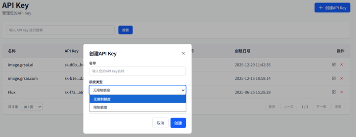 2.控制台创建 APikey(可设置限制额度)