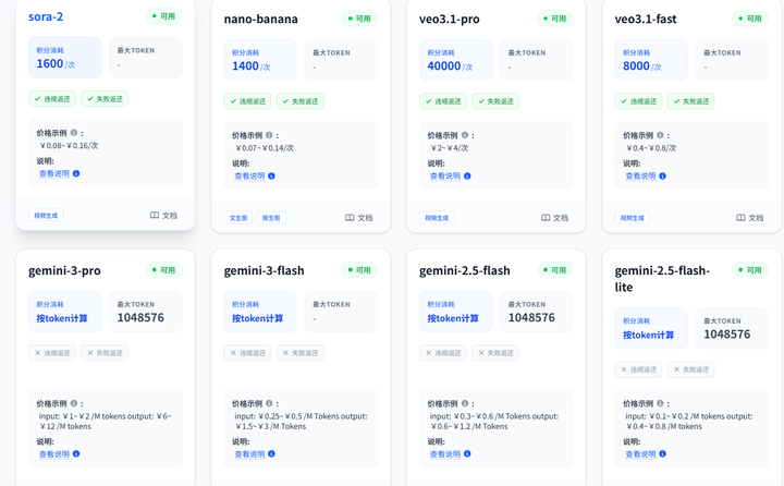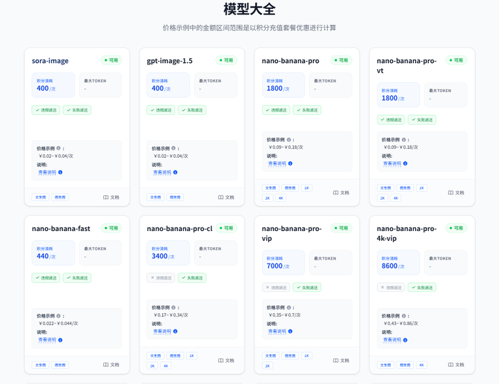 具体请看模型列表:https://grsai.com/zh/dashboard/models