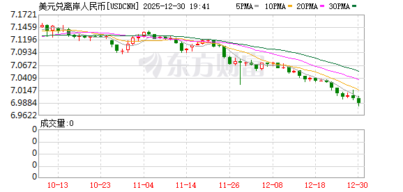 12月30日,人民币继续了此前的升值态势,在离岸市场12月25日升破“7”后,人民币对美元即期汇率走强并升破“7”关口,这是2024年10月以来首次升破这一整数关口。今年以来,人民币升值幅度超过4%,也就是说,汇率波动已经抹平了利率收益。