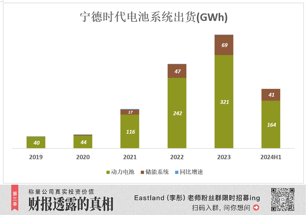 2019年,电池系统出货41 GWh、同比增长92%;2020年,电池系统出货46.8 GWh、增速降至14%;2021年,电池系统出货133 GWh、同比增长185%;2022年,电池系统出货289 GWh、同比增长117%;